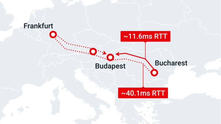 Deploying with i3D.net helped Quad9 directly service 100% of the Romanian market, alongside highlighting the innate strength of i3D.net’s network in comparison to competitors. While public cloud providers and other network operators use traditional routing options such as Frankfurt, i3D.net can strengthen regions often ignored. With the Bucharest location, i3D.net offers more direct routing to Budapest instead of scenic routing through Frankfurt or other PoPs further away, and as evidenced by the reduction in RTT, this can help customers provide users with improved performance.